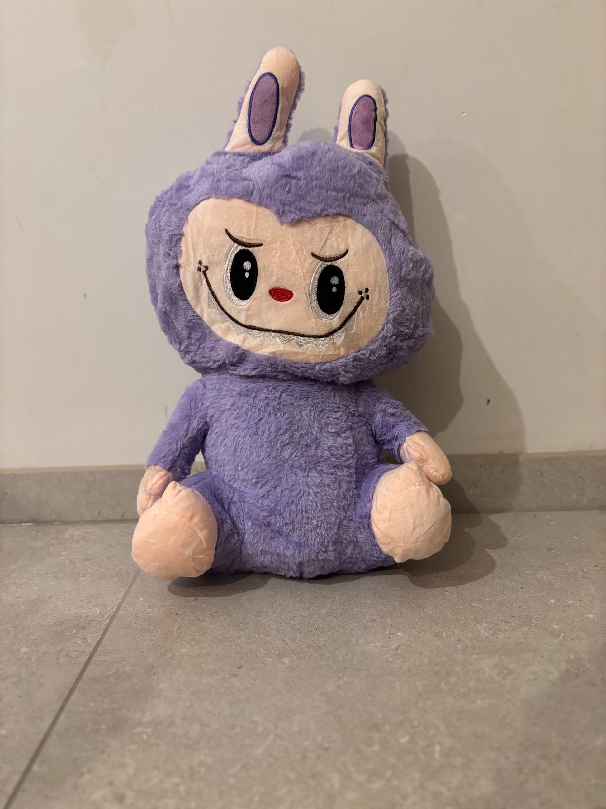 Grote knuffel Labubu met groot fleecedeken met labubus op
