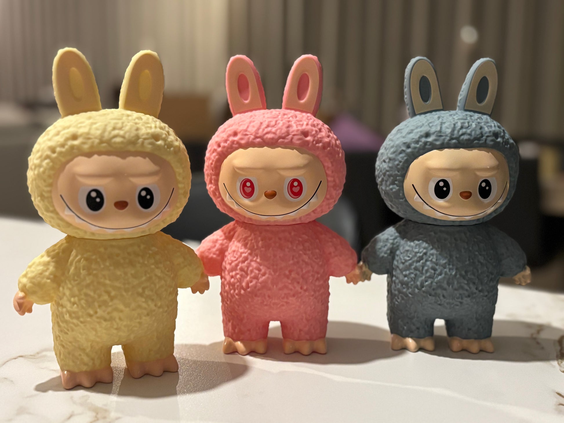 Labubu spaarpot in kunststof, drie verschillende kleuren
